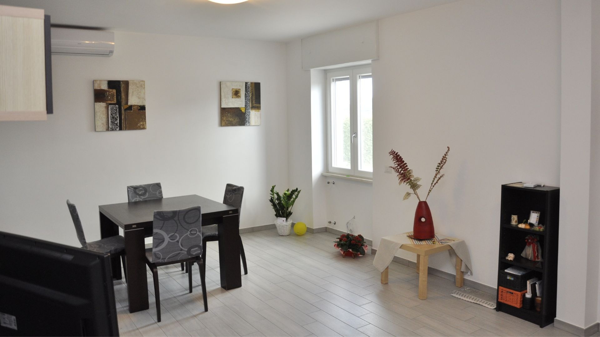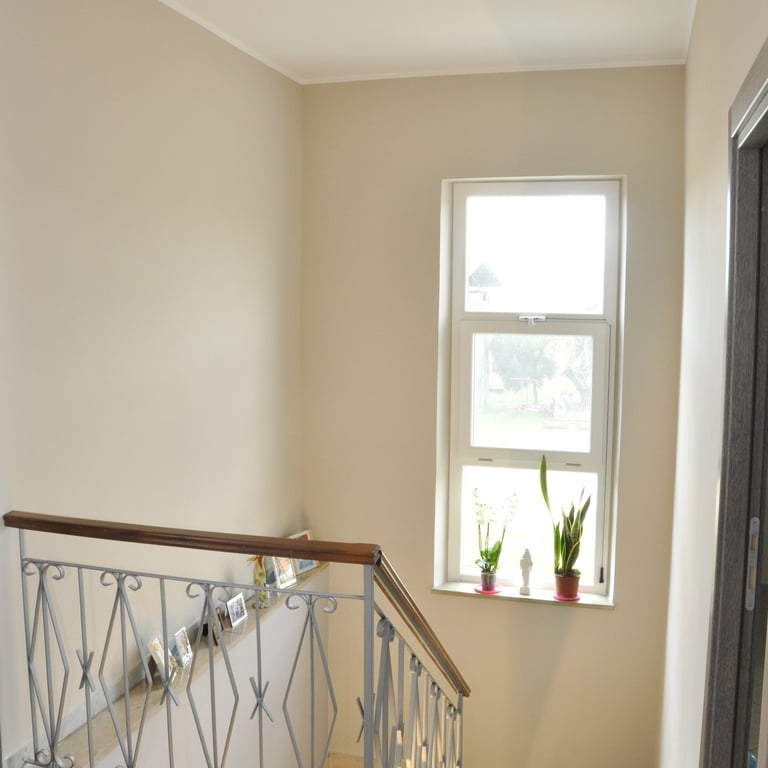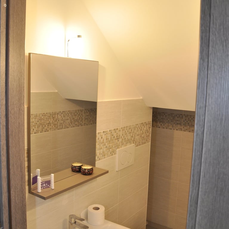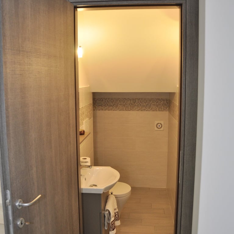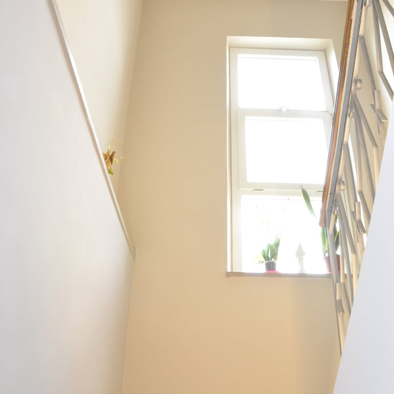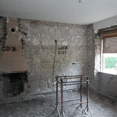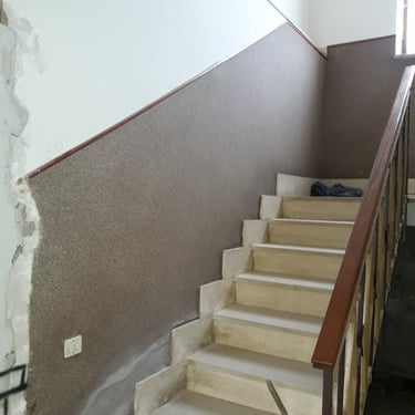 Dopo la completa rimozione delle parti danneggiate, si è provveduto al ripristino degli ambienti utilizzando materiali traspiranti a base di calce, ideali per favorire la salubrità e la durata delle superfici. Successivamente, l’attenzione si è spostata sulle finiture: è stato installato un controsoffitto per migliorare estetica e funzionalità, mentre nello spazio sottoscala è stato realizzato un nuovo bagno, colmando la mancanza di servizi igienici al piano terra. Gli infissi sono stati sostituiti e tutte le superfici sono state tinteggiate con materiali traspiranti, fino alla posa di pavimenti effetto legno grigio, che conferiscono contemporaneità agli ambienti.