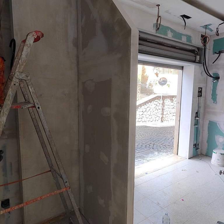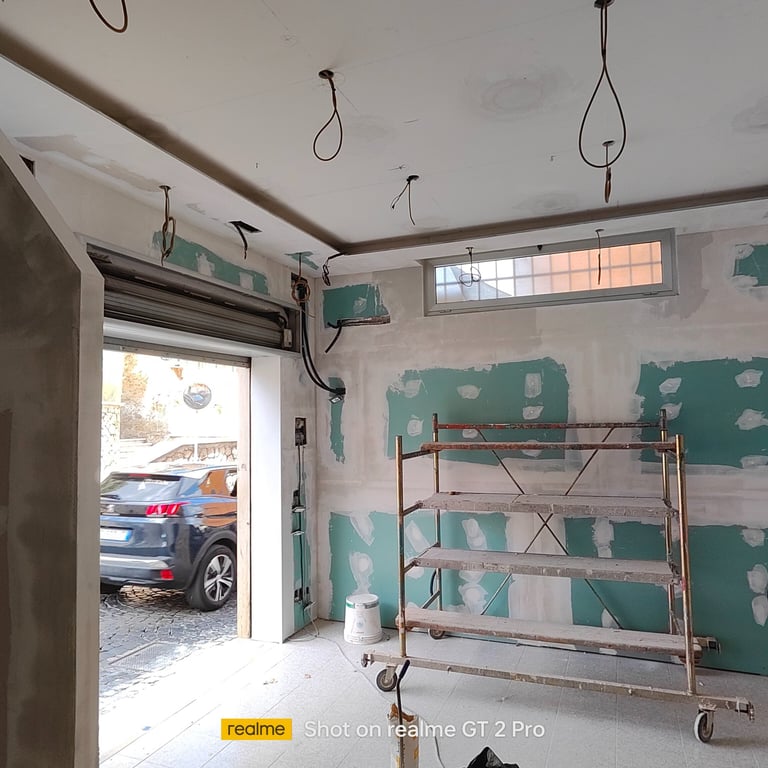 L’intervento ha previsto diverse opere murarie finalizzate alla suddivisione degli ambienti interni. Questa fase è stata fondamentale per ottimizzare la distribuzione degli spazi, in modo da garantire una migliore fruibilità del locale e rispondere alle necessità operative dei clienti.